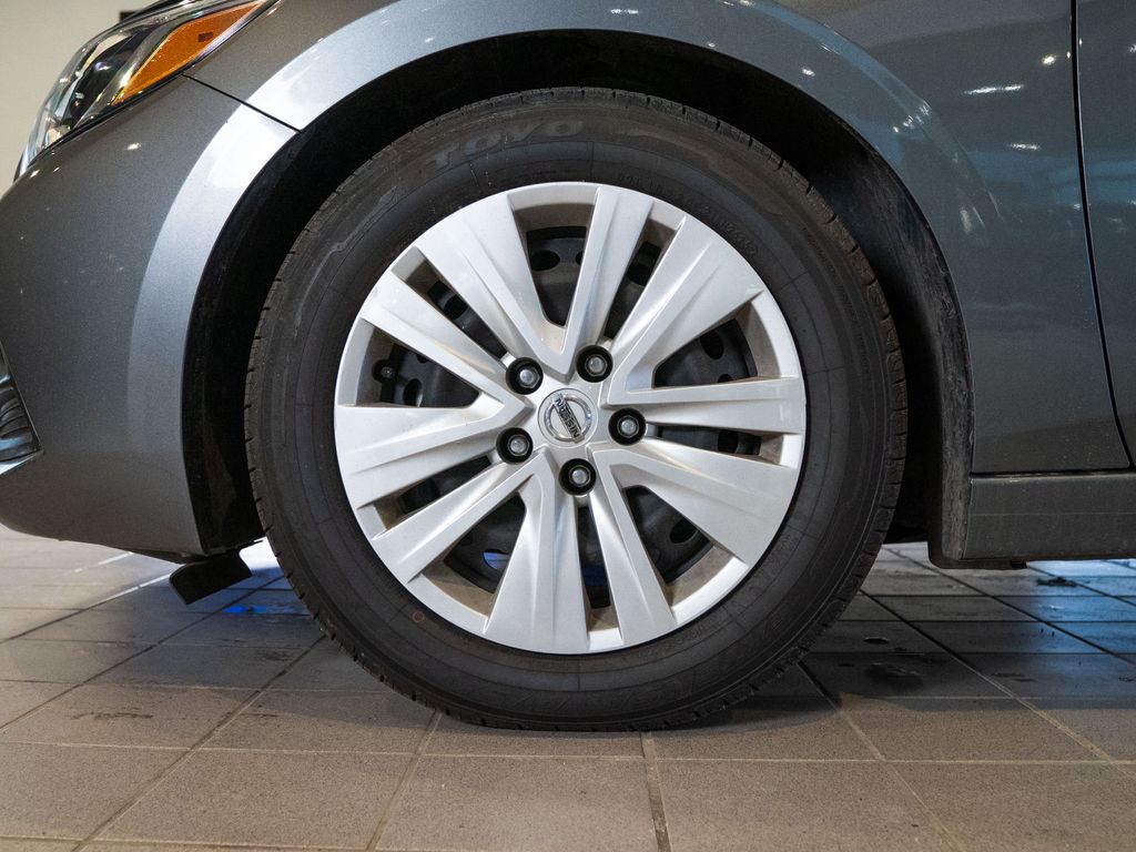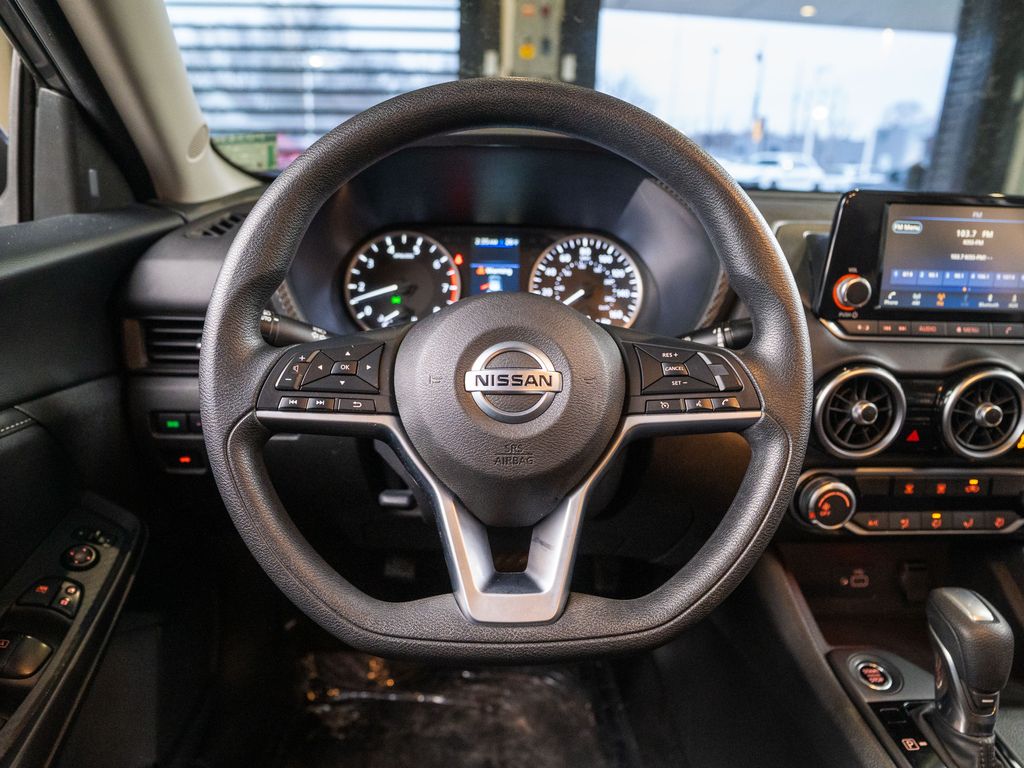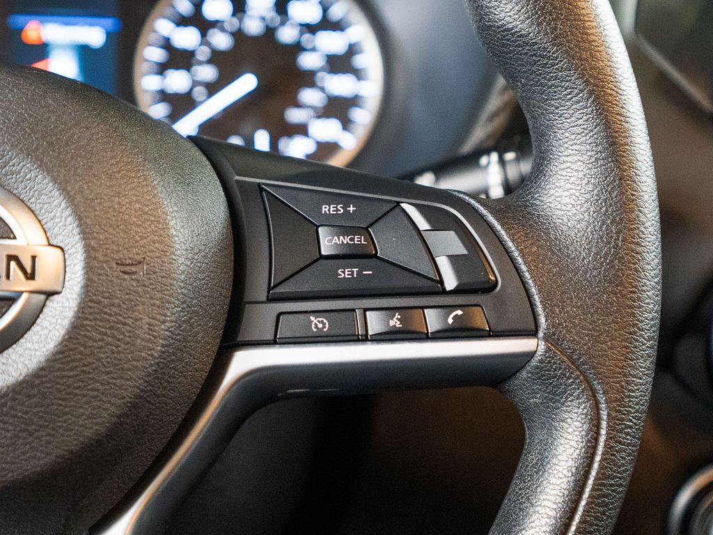 CVT with Xtronic, Charcoal w/Cloth Seat Trim, Traction control, 16" Steel Wheels w/Full Wheel Covers, 4 Speakers, ABS brakes, Air Conditioning, AM/FM radio, Auto High-beam Headlights, Blind Spot Warning, Brake assist, Bumpers: body-color, Cloth Seat Trim, Delay-off headlights, Driver door bin, Driver vanity mirror, Dual front impact airbags, Dual front side impact airbags, Electronic Stability Control, Four wheel independent suspension, Front anti-roll bar, Front Bucket Seats, Front Center Armrest, Front reading lights, Fully automatic headlights, Illuminated entry, Knee airbag, Low tire pressure warning, NissanConnect featuring Apple CarPlay and Android Auto, Occupant sensing airbag, Outside temperature display, Overhead airbag, Overhead console, Panic alarm, Passenger door bin, Passenger vanity mirror, Power door mirrors, Power steering, Power windows, Radio data system, Radio: AM/FM w/RDS/MP3/Aux-In, Rear anti-roll bar, Rear Parking Sensors, Rear side impact airbag, Rear window defroster, Remote keyless entry, Speed control, Speed-sensing steering, Split folding rear seat, Steering wheel mounted audio controls, Tachometer, Telescoping steering wheel, Tilt steering wheel, Trip computer, and Variably intermittent wipers.