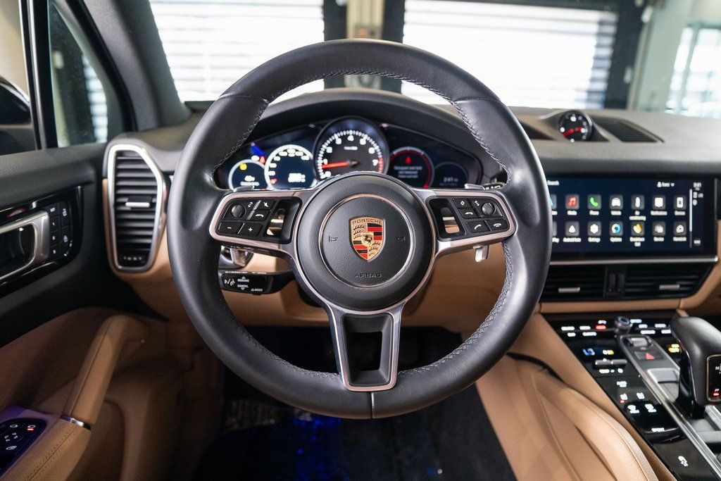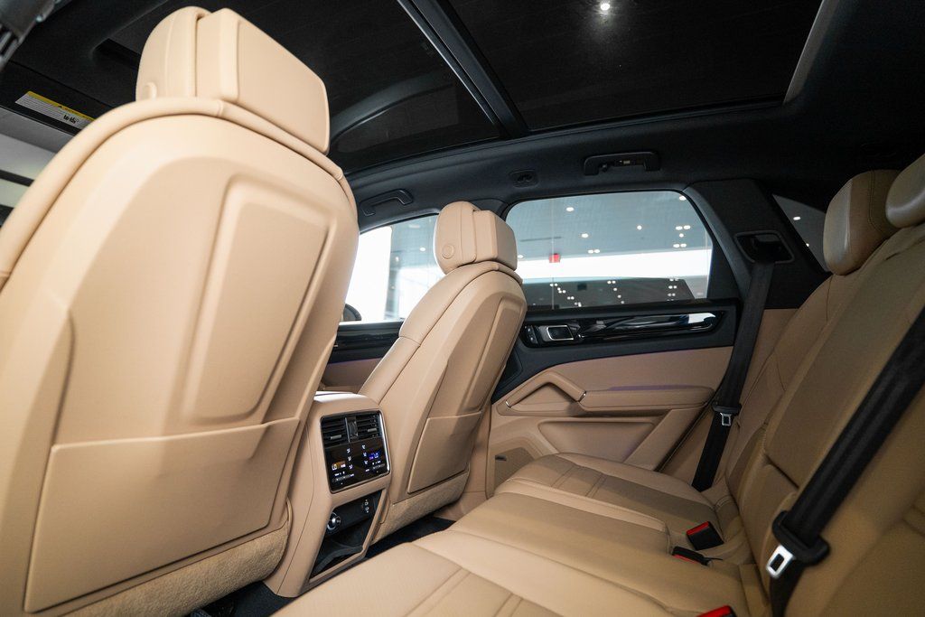 Premium Package (14-Way Power Seats w/Comfort Memory, Ambient Lighting, Automatically Dimming Mirrors, BOSE Surround Sound System, Comfort Access, Heated Front Seats, Lane Change Assist (LCA), LED Headlights w/PDLS, Panoramic Roof System, and Power Steering Plus), Porsche Approved Certified Pre-Owned Certified, Black/Mojave Beige w/Partial Leather Seat Trim w/Two-Tone Interior, 4-Zone Climate Control, Apple CarPlay, Brake assist, Exclusive Design Fuel Cap, Front Seat Ventilation, Heated Steering Wheel, Power Liftgate, Roof Rails in High Gloss Black, Surround View, Trailer Hitch w/o Tow Ball, Wheels: 20" Cayenne Sport, Window Trim in High-Gloss Black, 10 Speakers, 4-Wheel Disc Brakes, 8-Way Power Seats, ABS brakes, Adaptive suspension, Air Conditioning, Alloy wheels, AM/FM radio: SiriusXM, Automatic temperature control, Axle Ratio: 3.48, Bumpers: body-color, Delay-off headlights, Driver door bin, Driver vanity mirror, Dual front impact airbags, Dual front side impact airbags, Electronic Stability Control, Exterior Parking Camera Rear, Four wheel independent suspension, Front anti-roll bar, Front Bucket Seats, Front Center