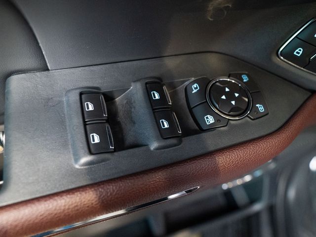 Equipment Group 301A Mid Package, 12 Speakers, 2nd Row Power-Folding 40/20/40 Leather Bench Seat, 3.31 Axle Ratio, 3rd row seats: split-bench, 4-Wheel Disc Brakes, ABS brakes, Adjustable pedals, Air Conditioning, Alloy wheels, AM/FM radio: SiriusXM with 360L, Auto High-beam Headlights, Auto-dimming door mirrors, Auto-dimming Rear-View mirror, Automatic temperature control, Brake assist, Bumpers: body-color, Compass, Delay-off headlights, Driver door bin, Driver vanity mirror, Dual front impact airbags, Dual front side impact airbags, Electronic Stability Control, Emergency communication system: SYNC 4 911 Assist, Exterior Parking Camera Rear, Four wheel independent suspension, Front anti-roll bar, Front Bucket Seats, Front Center Armrest, Front dual zone A/C, Front fog lights, Front License Plate Bracket, Front reading lights, Fully automatic headlights, Garage door transmitter, Heated & Ventilated Leather Front Captain's Chairs, Heated door mirrors, Heated Front Seats, Heated rear seats, Heated steering wheel, Illuminated entry, Leather steering wheel, Low tire pressure warning, Memory seat, Navigation system: Connected Navigation, Occupant sensing airbag, Outside temperature display, Overhead airbag, Overhead console, Panic alarm, Passenger door bin, Passenger vanity mirror, Pedal memory, Power door mirrors, Power driver seat, Power Liftgate, Power moonroof, Power passenger seat, Power steering, Power windows, Radio data system, Radio: B&O Sound System by Bang & Olufsen, Rain sensing wipers, Rear air conditioning, Rear anti-roll bar, Rear reading lights, Rear window defroster, Rear window wiper, Reclining 3rd row seat, Remote Keyless Entry, Security system, SiriusXM w/360L, Speed control, Speed-sensing steering, Speed-Sensitive Wipers, Split folding rear seat, Spoiler, Steering wheel memory, Steering wheel mounted audio controls, SYNC 4 w/Enhanced Voice Recognition, Tachometer, Telescoping steering wheel, Tilt steering wheel, Traction control, Trip computer, Turn signal indicator mirrors, Variably intermittent wipers, Ventilated front seats, Voltmeter, and Wheels: 20" Bright Machined Alumi