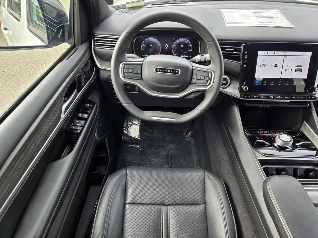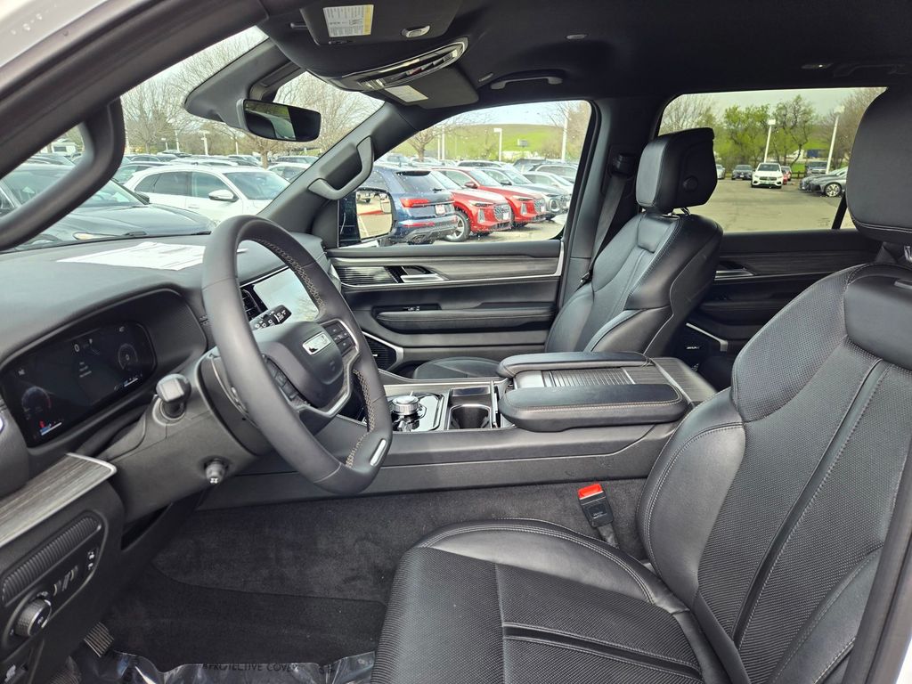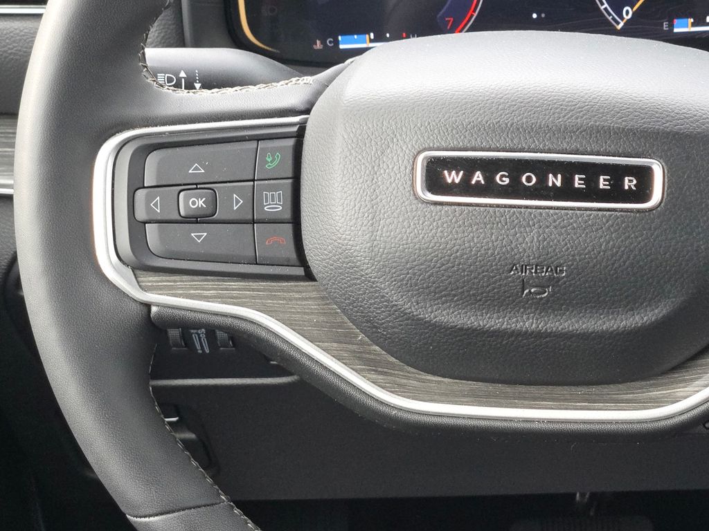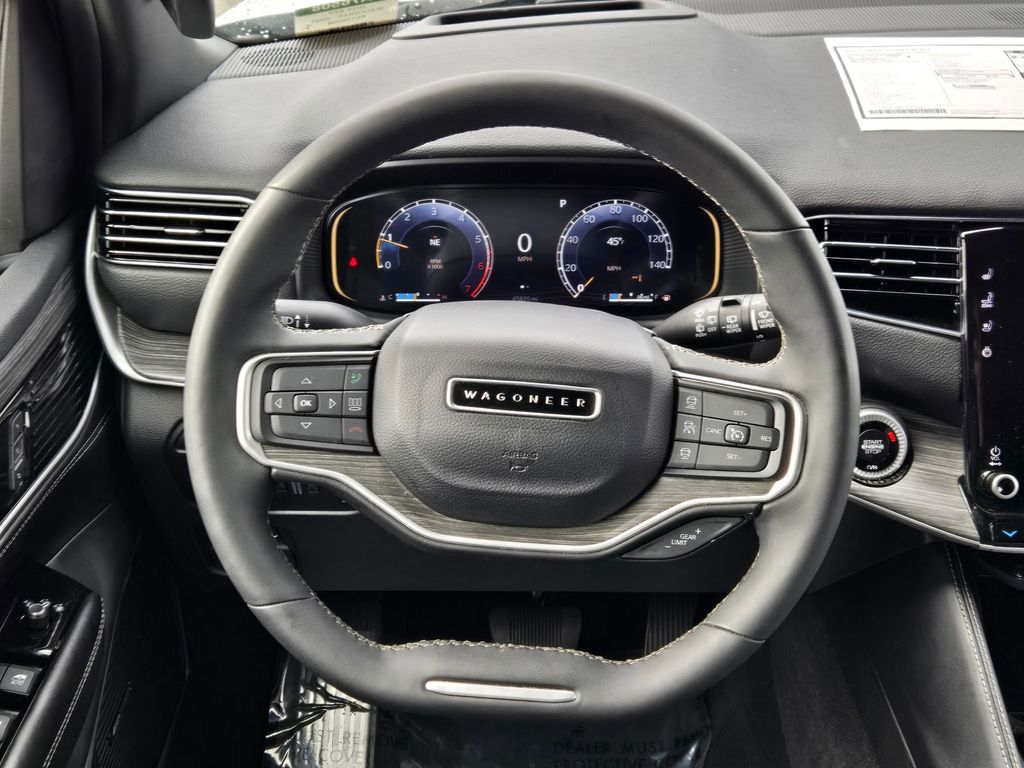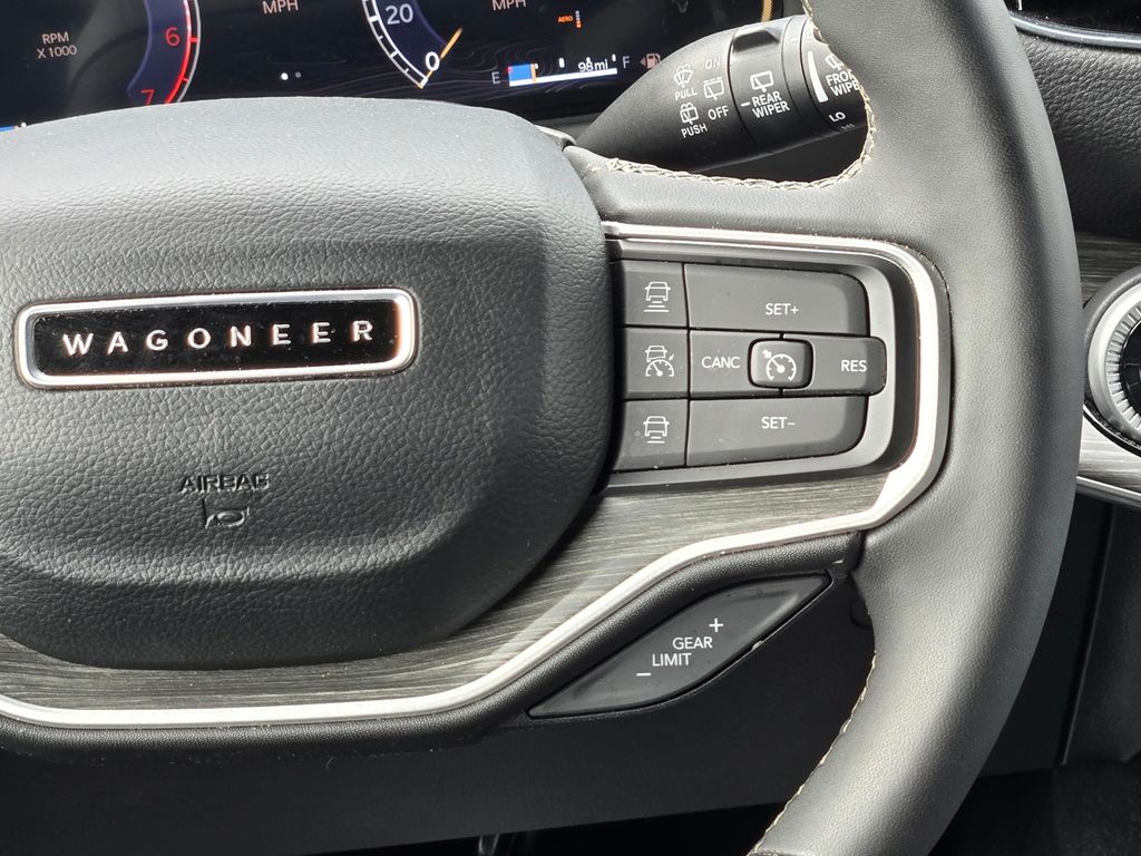 Quick Order Package 25N, Alloy wheels, Auto-leveling suspension, Exterior Parking Camera Rear, Navigation System, Power Liftgate, Wheels: 20" x 9.0" Aluminum (DISC), 10 Speakers, 3.55 Rear Axle Ratio, 3rd row seats: bench, 4-Wheel Disc Brakes, ABS brakes, Adjustable pedals, Air Conditioning, AM/FM radio: SiriusXM with 360L, Anti-whiplash front head restraints, Apple CarPlay/Android Auto, Audio memory, Auto High-beam Headlights, Auto-dimming door mirrors, Auto-dimming Rear-View mirror, Automatic temperature control, Brake assist, Bumpers: body-color, Compass, Delay-off headlights, Driver door bin, Driver vanity mirror, Driver's Seat Mounted Armrest, Dual front impact airbags, Dual front side impact airbags, Electronic Stability Control, Emergency communication system: Wagoneer Connect, Four wheel independent suspension, Front anti-roll bar, Front Bucket Seats, Front Center Armrest w/Storage, Front dual zone A/C, Front fog lights, Front reading lights, Fully automatic headlights, Garage door transmitter, Genuine wood console insert, Genuine wood dashboard insert, Genuine wood door panel insert, Heated door mirrors, Heated front seats, Heated rear seats, Heated steering wheel, Illuminated entry, Knee airbag, Leather Trimmed Bucket Seats, Low tire pressure warning, Memory seat, Normal Duty Suspension, Occupant sensing airbag, Outside temperature display, Overhead airbag, Overhead console, Panic alarm, Passenger door bin, Passenger seat mounted armrest, Passenger vanity mirror, Pedal memory, Power adjustable front head restraints, Power door mirrors, Power driver seat, Power passenger seat, Power steering, Power windows, Radio data system, Radio: Uconnect 5 Nav w/10.1" Display, Rain sensing wipers, Rear air conditioning, Rear anti-roll bar, Rear dual zone A/C, Rear reading lights, Rear seat center armrest, Rear window defroster, Rear window wiper, Reclining 3rd row seat, Remote keyless entry, Security system, Speed control, Speed-sensing steering, Speed-Sensitive Wipers, Split folding rear seat, Steering wheel memory, Steering wheel mounted audio controls, Tachometer, Telescoping steering wheel, Tilt steering wheel, Traction control, Trip computer, Turn signal indicator mirrors, Variably intermittent wipers, Ventilated front seats, and Voltmeter.