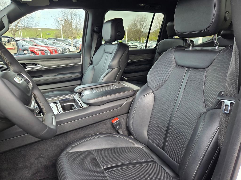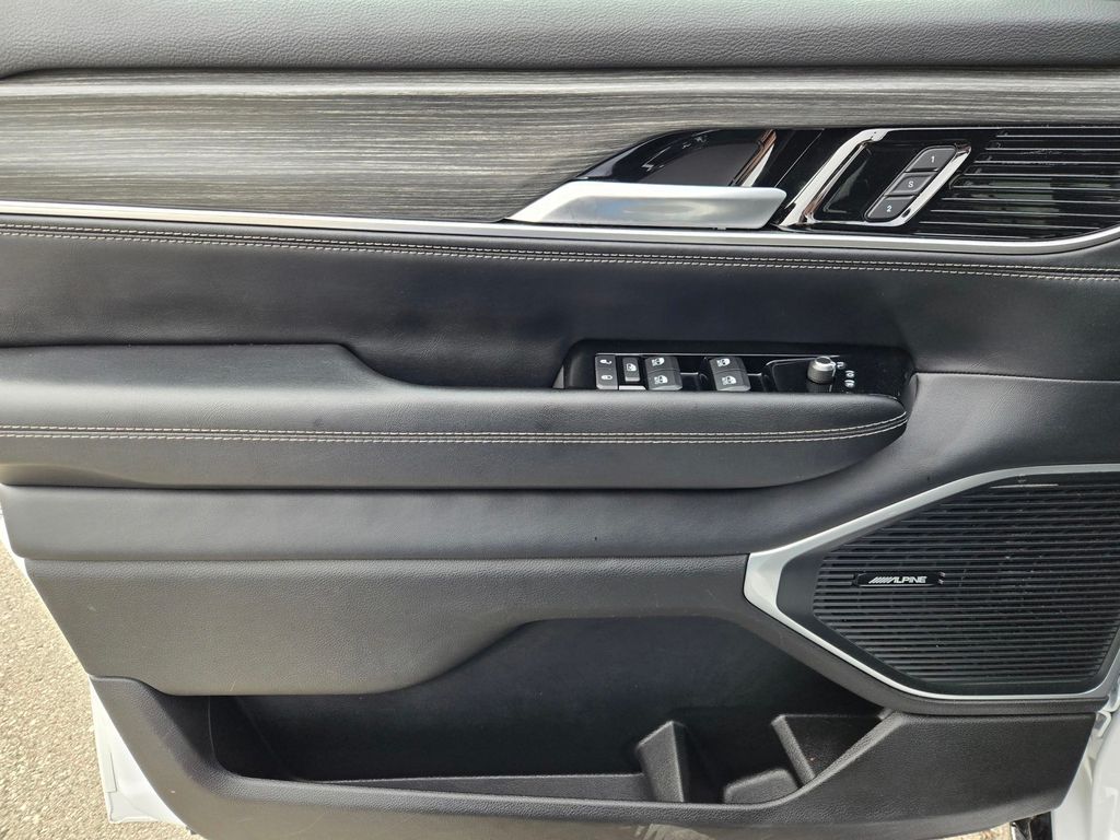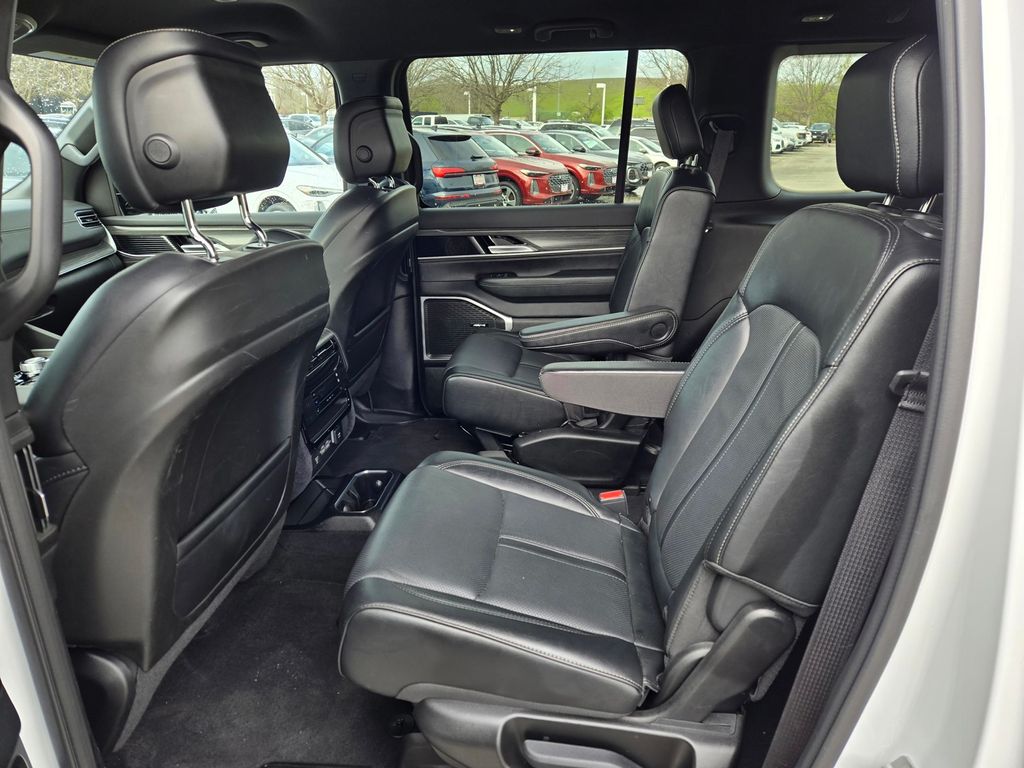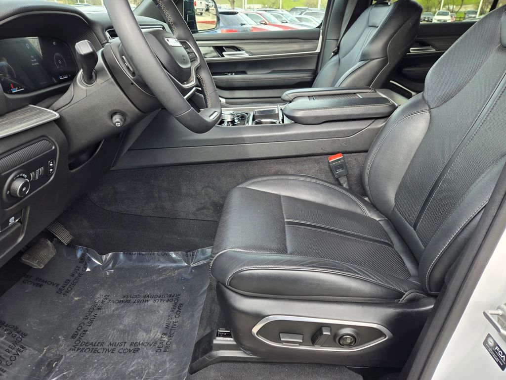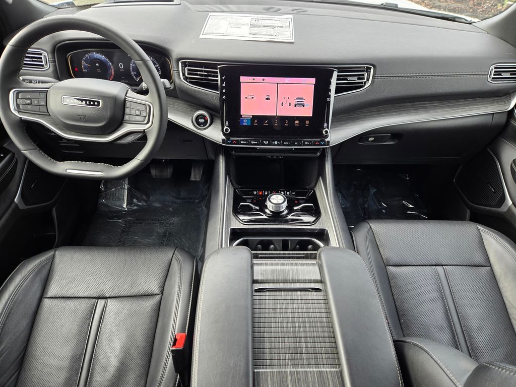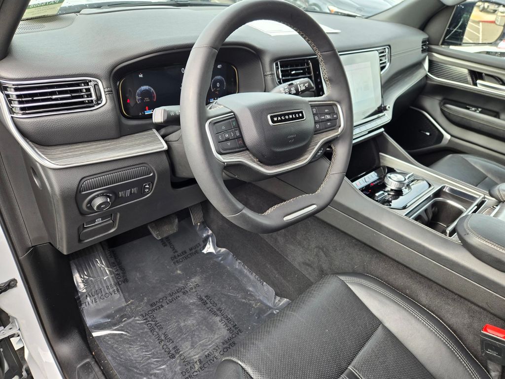 Quick Order Package 25N, Alloy wheels, Auto-leveling suspension, Exterior Parking Camera Rear, Navigation System, Power Liftgate, Wheels: 20" x 9.0" Aluminum (DISC), 10 Speakers, 3.55 Rear Axle Ratio, 3rd row seats: bench, 4-Wheel Disc Brakes, ABS brakes, Adjustable pedals, Air Conditioning, AM/FM radio: SiriusXM with 360L, Anti-whiplash front head restraints, Apple CarPlay/Android Auto, Audio memory, Auto High-beam Headlights, Auto-dimming door mirrors, Auto-dimming Rear-View mirror, Automatic temperature control, Brake assist, Bumpers: body-color, Compass, Delay-off headlights, Driver door bin, Driver vanity mirror, Driver's Seat Mounted Armrest, Dual front impact airbags, Dual front side impact airbags, Electronic Stability Control, Emergency communication system: Wagoneer Connect, Four wheel independent suspension, Front anti-roll bar, Front Bucket Seats, Front Center Armrest w/Storage, Front dual zone A/C, Front fog lights, Front reading lights, Fully automatic headlights, Garage door transmitter, Genuine wood console insert, Genuine wood dashboard insert, Genuine wood door panel insert, Heated door mirrors, Heated front seats, Heated rear seats, Heated steering wheel, Illuminated entry, Knee airbag, Leather Trimmed Bucket Seats, Low tire pressure warning, Memory seat, Normal Duty Suspension, Occupant sensing airbag, Outside temperature display, Overhead airbag, Overhead console, Panic alarm, Passenger door bin, Passenger seat mounted armrest, Passenger vanity mirror, Pedal memory, Power adjustable front head restraints, Power door mirrors, Power driver seat, Power passenger seat, Power steering, Power windows, Radio data system, Radio: Uconnect 5 Nav w/10.1" Display, Rain sensing wipers, Rear air conditioning, Rear anti-roll bar, Rear dual zone A/C, Rear reading lights, Rear seat center armrest, Rear window defroster, Rear window wiper, Reclining 3rd row seat, Remote keyless entry, Security system, Speed control, Speed-sensing steering, Speed-Sensitive Wipers, Split folding rear seat, Steering wheel memory, Steering wheel mounted audio controls, Tachometer, Telescoping steering wheel, Tilt steering wheel, Traction control, Trip computer, Turn signal indicator mirrors, Variably intermittent wipers, Ventilated front seats, and Voltmeter.