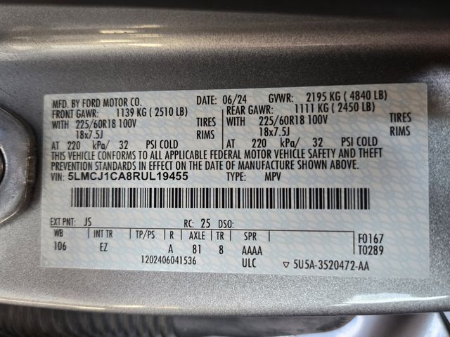 Recent Arrival! **10 YEAR/150,000 ENGINE WARRANTY**, 18" Bright Machined Aluminum Wheels, Alexa Built-In, Alloy wheels, Apple CarPlay/Android Auto, Auto High-beam Headlights, Automatic temperature control, Brake assist, Electronic Stability Control, Emergency communication system: 911 Assist, Equipment Group 100A, Four wheel independent suspension, Front Bucket Seats, Front dual zone A/C, Fully automatic headlights, Heated front seats, Lane Departure Warning System, Lincoln Soft Touch Heated Front Captain's Chairs, Memory seat, Navigation system: Connected Navigation (3-year trial), Power driver seat, Power Liftgate, Power passenger seat, Radio: Lincoln Premium Audio System w/MP3, Rear Parking Sensors, Remote keyless entry, SiriusXM Radio, Speed-sensing steering, Steering wheel mounted A/C controls, Steering wheel mounted audio controls, SYNC 4 Communications & Entertainment System, Traction control. Clean CARFAX.