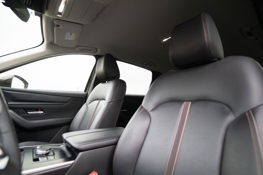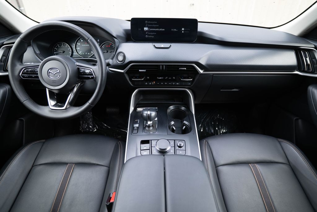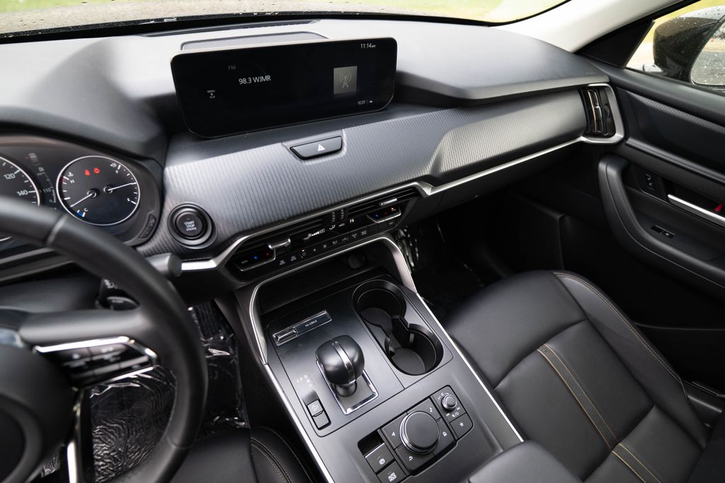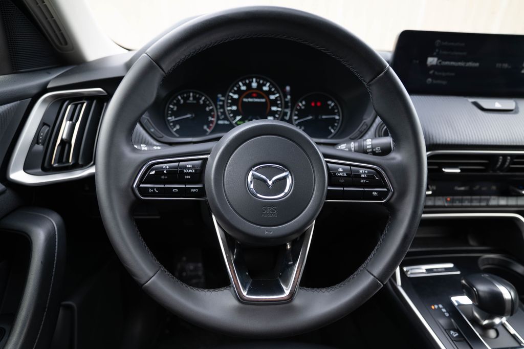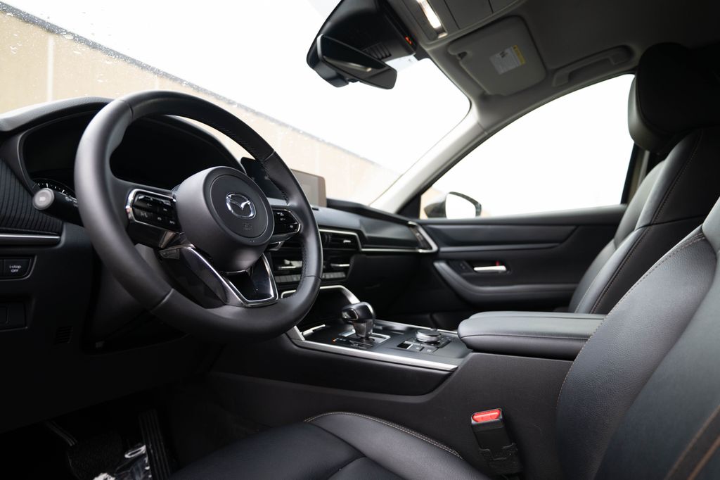 CX-90 3.3 Turbo Select, CarBravo Certified Tier Certified, AWD, Black Premium Synthetic, 3.692 Axle Ratio, 3rd row seats: bench, 4-Wheel Disc Brakes, 8 Speakers, ABS brakes, Air Conditioning, Alloy wheels, AM/FM radio, AppLink/Apple CarPlay and Android Auto, Auto High-beam Headlights, Automatic temperature control, Brake assist, Bumpers: body-color, Compass, Delay-off headlights, Driver door bin, Driver vanity mirror, Dual front impact airbags, Dual front side impact airbags, E911 Automatic Emergency Notification, Electronic Stability Control, Emergency communication system: MAZDA CONNECT, Exterior Parking Camera Rear, Four wheel independent suspension, Front anti-roll bar, Front Bucket Seats, Front Center Armrest w/Storage, Front dual zone A/C, Front reading lights, Fully automatic headlights, Heated door mirrors, Illuminated entry, Infotainment System Voice Command, Knee airbag, Leather Shift Knob, Leather steering wheel, Leatherette Seat Trim, Low tire pressure warning, Mazda Connected Services, Occupant sensing airbag, Outside temperature display, Overhead airbag, Overhead console, Pandora Internet Radio Integration, Panic alarm, Passenger door bin, Passenger vanity mirror, Power door mirrors, Power driver seat, Power Liftgate, Power steering, Power windows, Radio Broadcast Data System Program Information, Radio data system, Radio: AM/FM Sound System, Rain sensing wipers, Rear air conditioning, Rear anti-roll bar, Rear reading lights, Rear seat center armrest, Rear window defroster, Rear window wiper, Remote keyless entry, SMS Text Msg Audio Delivery & Reply, Speed control, Speed-sensing steering, Split folding rear seat, Spoiler, Steering wheel mounted audio controls, Tachometer, Telescoping steering wheel, Tilt steering wheel, Traction cont