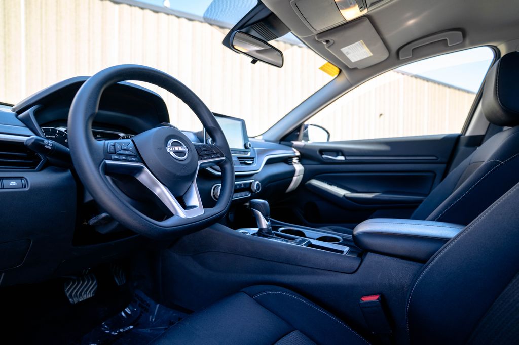 Altima 2.5 SV, CarBravo Certified Tier Certified, CVT with Xtronic, 17" Alloy Wheels, 4-Wheel Disc Brakes, 6 Speakers, ABS brakes, Air Conditioning, Alloy wheels, AM/FM radio: SiriusXM, Auto High-beam Headlights, Blind Spot Warning, Brake assist, Bumpers: body-color, Cloth Seat Trim, Delay-off headlights, Driver door bin, Driver vanity mirror, Dual front impact airbags, Dual front side impact airbags, Electronic Stability Control, Floor Mats/Trunk Mat/Hideaway Net, Four wheel independent suspension, Front anti-roll bar, Front Bucket Seats, Front Center Armrest, Front reading lights, Fully automatic headlights, Illuminated entry, Knee airbag, Low tire pressure warning, NissanConnect featuring Apple CarPlay, Occupant sensing airbag, Outside temperature display, Overhead airbag, Overhead console, Panic alarm, Passenger door bin, Passenger vanity mirror, Power door mirrors, Power driver seat, Power steering, Power windows, Radio data system, Radio: AM/FM Audio System, Rear anti-roll bar, Rear Parking Sensors, Rear reading lights, Rear seat center armrest, Rear side impact airbag, Rear window defroster, Remote keyless entry, Security system, Speed control, Speed-sensing steering, Speed-Sensitive Wipers, Split folding rear seat, Steering wheel mounted audio controls, Tachometer, Telescoping steering wheel, Tilt steering wheel, Traction control, Trip computer, and Variably intermittent wipers.
