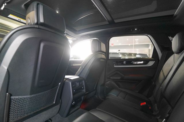 Premium Package (Adaptive Cruise Control, Ambient Lighting, BOSE Surround Sound System, Front & Rear Heated Seats, and Panoramic Roof System), Black w/Leather Seat Trim w/Leather Interior, Adaptive suspension, Brake assist, Exterior Parking Camera Rear, Heated front seats, Heated Steering Wheel, Illuminated entry, Power Liftgate, Surround View, Wheels: 20" Cayenne Design, 10 Speakers, 4-Wheel Disc Brakes, 8-Way Power Seats, ABS brakes, Air Conditioning, Alloy wheels, AM/FM radio: SiriusXM w/360L, Audio memory, Auto High-beam Headlights, Auto-dimming door mirrors, Auto-dimming Rear-View mirror, Automatic temperature control, Axle Ratio: 3.48, Bumpers: body-color, Compass, Delay-off headlights, Driver door bin, Driver vanity mirror, Dual front impact airbags, Dual front side impact airbags, Electronic Stability Control, Four wheel independent suspension, Front anti-roll bar, Front Bucket Seats, Front Center Armrest, Front dual zone A/C, Front reading lights, Fully automatic headlights, Garage door transmitter: HomeLink, Heated door mirrors, HVAC memory, Knee airbag, Leather steering wheel, Low tire pressure warning, Memory seat, Navigation System, Occupant sensing airbag, Outside temperature display, Overhead airbag, Overhead console, Panic alarm, Partial Leather Seat Trim, Passenger door bin, Passenger vanity mirror, Porsche Communication Management, Power door mirrors, Power driver seat, Power passenger seat, Power steering, Power windows, Radio data system, Rain sensing wipers, Rear anti-roll bar, Rear fog lights, Rear reading lights, Rear seat center armrest, Rear side impact airbag, Rear window defroster, Rear window wiper, Remote keyless entry, Security system, Speed control, Speed-sensing steering, Split folding rear seat, Spoiler, Steering wheel mounted audio controls, Tachometer, Telescoping steering wheel, Tilt steering wheel, Traction control, Trip computer, Turn signal indicator mirrors, Variably intermittent wipers, and Voltmeter.