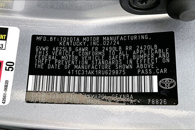 Celestial Silver Metallic 2024 Toyota Camry Hybrid LE 2.5L I4 DOHC 16V eCVT FWD 51/53 City/Highway MPG CARFAX One-Owner.