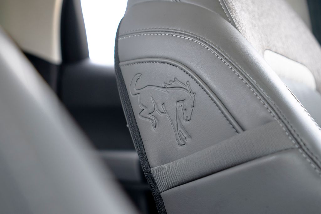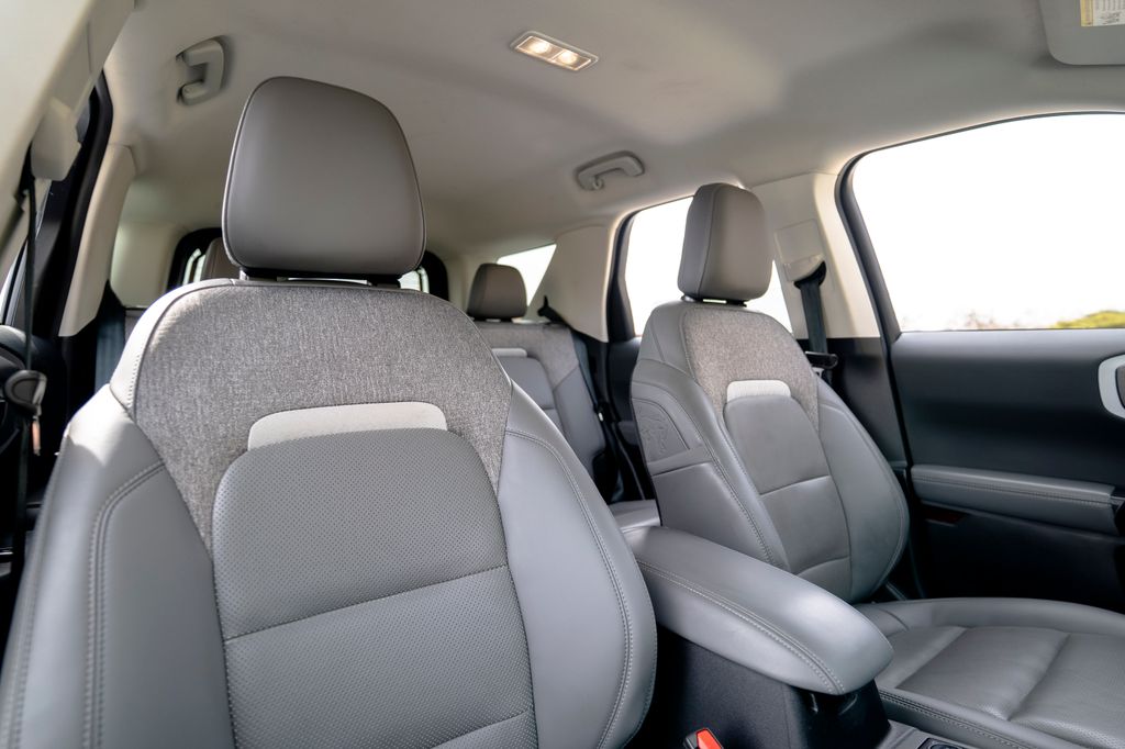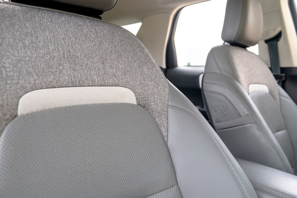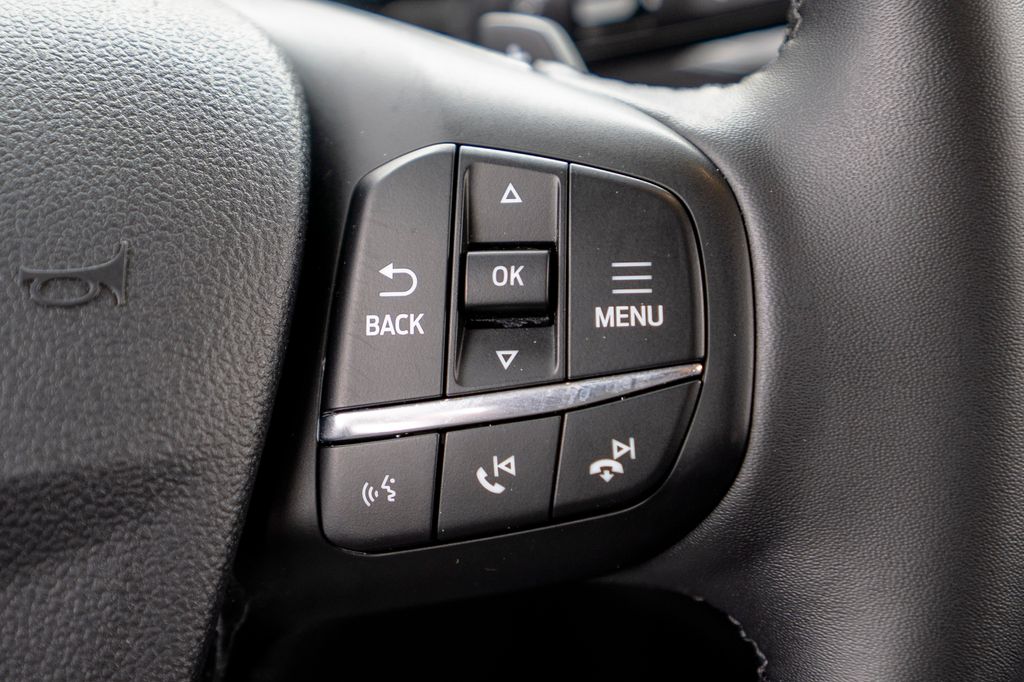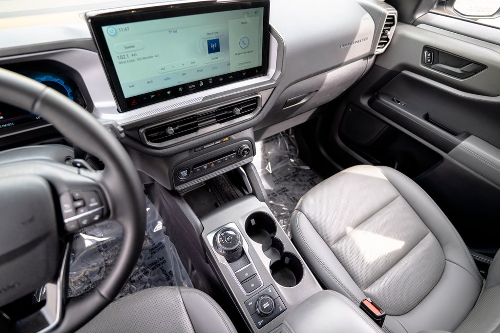 Equipment Group 400A, 4-Wheel Disc Brakes, 6 Speakers, ABS brakes, Air Conditioning, Alloy wheels, AM/FM radio: SiriusXM, AM/FM Stereo, Auto High-beam Headlights, Auto-dimming Rear-View mirror, Automatic temperature control, Brake assist, Compass, Delay-off headlights, Driver door bin, Driver vanity mirror, Dual front impact airbags, Dual front side impact airbags, Electronic Stability Control, Emergency communication system: SYNC 4 911 Assist, Four wheel independent suspension, Front anti-roll bar, Front Bucket Seats, Front Center Armrest, Front fog lights, Front License Plate Bracket, Front reading lights, Fully automatic headlights, Garage door transmitter, Heated door mirrors, Heated front seats, Heated steering wheel, Illuminated entry, Knee airbag, Leather Trimmed Front Bucket Seats, Low tire pressure warning, Memory seat, Occupant sensing airbag, Outside temperature display, Overhead airbag, Overhead console, Panic alarm, Passenger door bin, Passenger vanity mirror, Power door mirrors, Power driver seat, Power passenger seat, Power steering, Power windows, Radio data system, Rear anti-roll bar, Rear reading lights, Rear seat center armrest, Rear window defroster, Rear window wiper, Remote keyless entry, Security system, SiriusXM, Speed control, Speed-sensing steering, Speed-Sensitive Wipers, Split folding rear seat, Steering wheel mounted audio controls, SYNC 4 w/Enhanced Voice Recognition, Tachometer, Telescoping steering wheel, Tilt steering wheel, Traction control, Trip computer, Variably intermittent wipers, and Wheels: 17" Matte Black-Painted Aluminum.