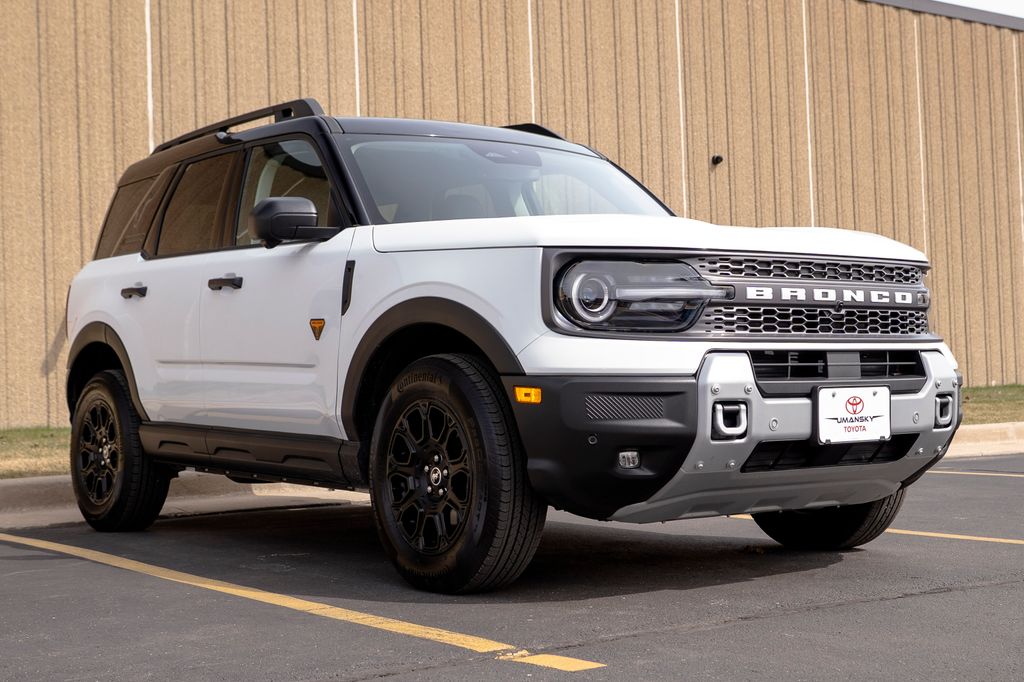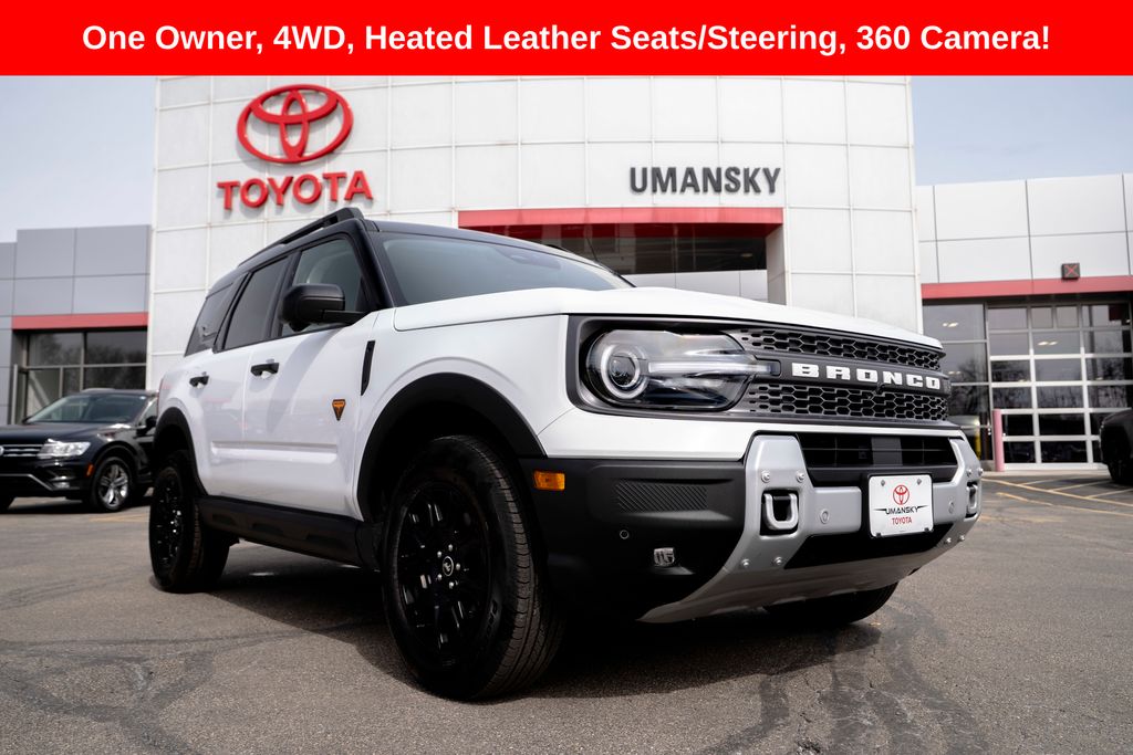 Includes 10 Year/150,000 Mile Warranty, Carfax One Owner, The 2025 Ford Bronco Sport Badlands in Oxford White with a Dark Space Gray interior is a rugged and adventure-ready compact SUV available now at Umansky Toyota in Milwaukee, Wisconsin, designed for drivers who want serious capability in a daily-friendly package. Its crisp white exterior pairs cleanly with the dark space gray interior, creating a bold and purposeful look both on city streets and off-road trails. The Badlands trim enhances off-road performance with advanced 4×4 systems, tougher suspension tuning, and protective underbody features — ideal for exploring Wisconsin’s backroads and outdoor terrain throughout the seasons. With versatile cargo space, intuitive technology, and confident handling, this 2025 Ford Bronco Sport Badlands at Umansky Toyota is an excellent choice for anyone near Milwaukee, WI seeking a dependable and capable SUV that’s ready for both everyday tasks and weekend adventures!, Heated Steering Wheel, Ford Co-Pilot360 - Reverse Camera Back-Up Camera, Heated Front Seats, Wireless Apple CarPlay/Android Auto, Equipment Group 400A.