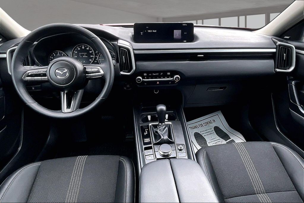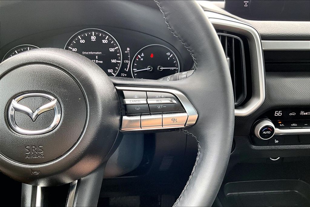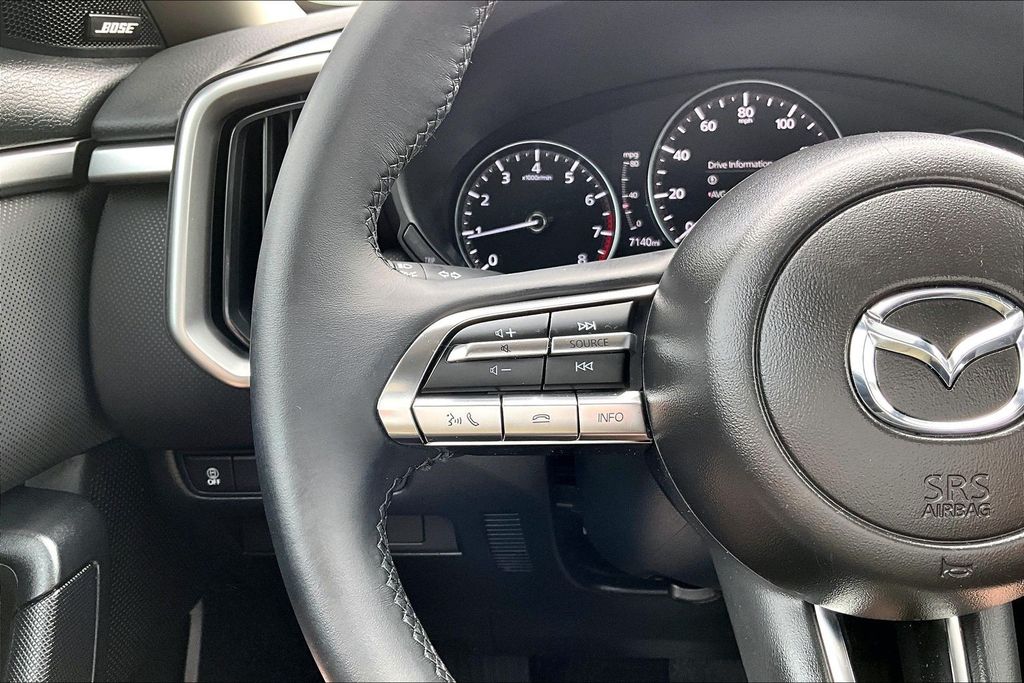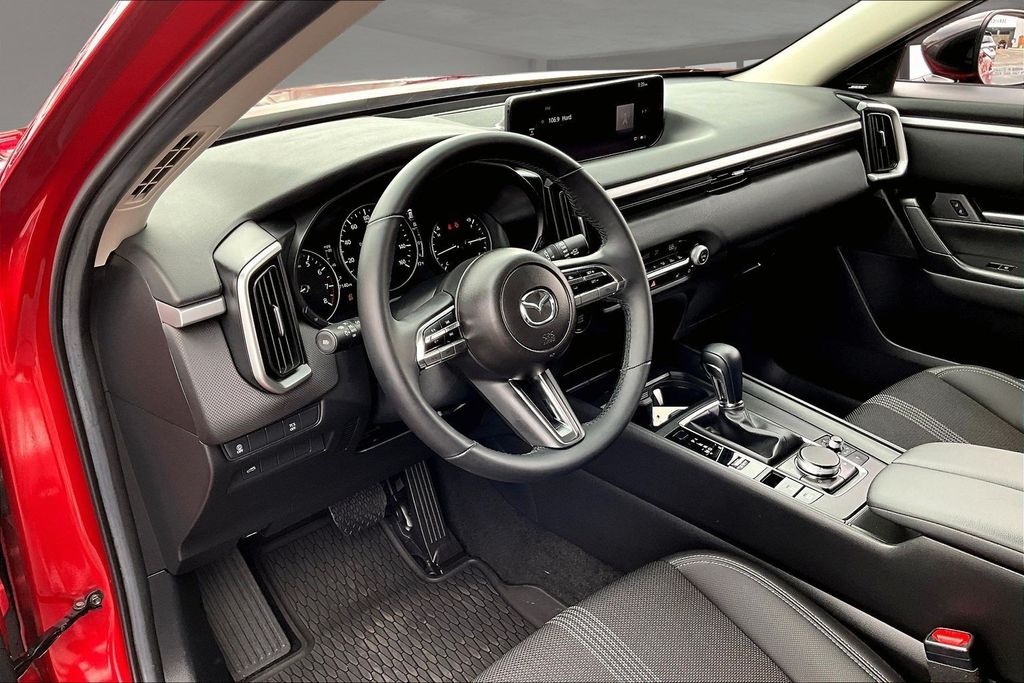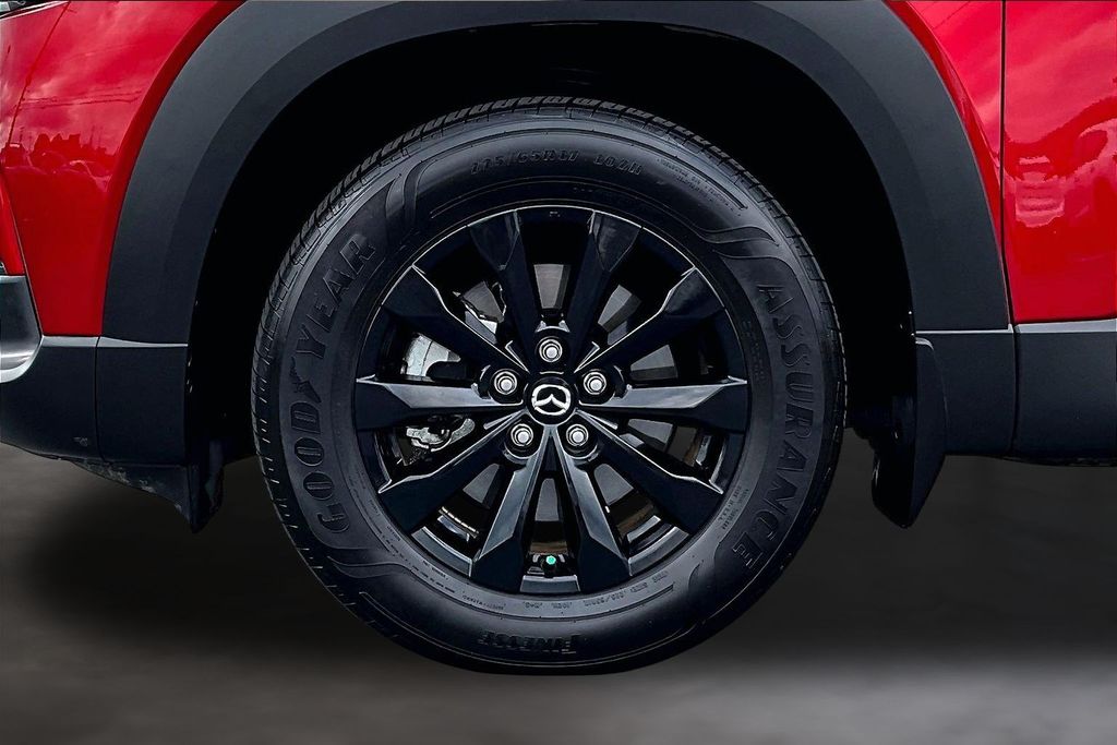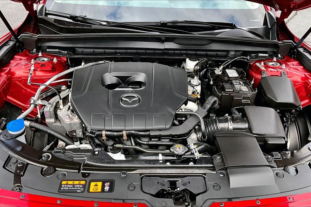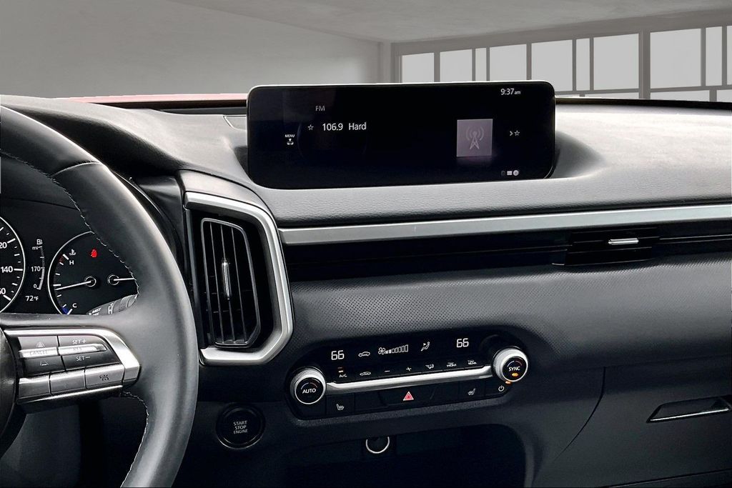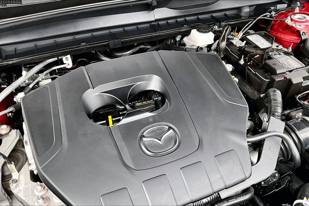 Weather Package (Cargo Liner w/Seatback Protection), 12 Speakers, 4-Wheel Disc Brakes, ABS brakes, Air Conditioning, Alloy wheels, AM/FM radio: SiriusXM, AppLink/Apple CarPlay and Android Auto, Auto High-beam Headlights, Automatic temperature control, Brake assist, Bumpers: body-color, Delay-off headlights, Driver door bin, Driver vanity mirror, Dual front impact airbags, Dual front side impact airbags, Electronic Stability Control, Emergency communication system: MAZDA CONNECT, Exterior Parking Camera Rear, Front anti-roll bar, Front Bucket Seats, Front Center Armrest, Front dual zone A/C, Front reading lights, Front wheel independent suspension, Fully automatic headlights, Half Leatherette Seat Trim, Heated door mirrors, Heated front seats, Heated Front Seats w/3 Level Adjustment, Illuminated entry, Knee airbag, Leather Shift Knob, Leather steering wheel, Low tire pressure warning, Occupant sensing airbag, Outside temperature display, Overhead airbag, Overhead console, Panic alarm, Passenger door bin, Passenger vanity mirror, Power door mirrors, Power driver seat, Power Liftgate, Power moonroof, Power steering, Power windows, Radio data system, Radio: AM/FM/HD Bose 12-Speaker Audio Sound System, Rain sensing wipers, Rear seat center armrest, Rear window defroster, Rear window wiper, Remote keyless entry, Soul Red Crystal Metallic Paint Charge, Speed control, Speed-sensing steering, Split folding rear seat, Spoiler, Steering wheel mounted audio controls, Tachometer, Telescoping steering wheel, Tilt steering wheel, Traction control, Trip computer, Turn signal indicator mirrors, Variably intermittent wipers, and Wheels: 17" x 7J Aluminum Alloy Black Metallic Finish.