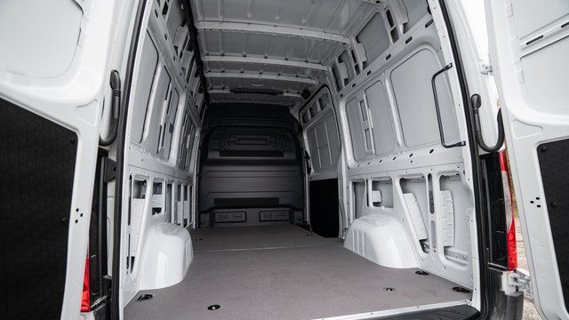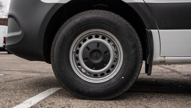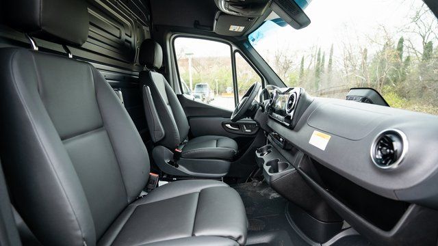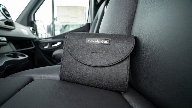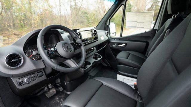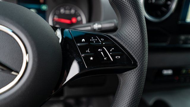 Acoustic Package, Comfort Package (Co-Driver Comfort Head Restraint, Co-Driver's Seat Lumbar Support, Comfort Overhead Control Panel, Driver Comfort Head Restraint, and Driver's Seat Lumbar Support), Driver Convenience Package (2 Additional Master Keys, ATTENTION ASSIST®, Driver Seat Base 12V Power Outlet, Electrically Folding Exterior Mirrors, Hinged Lid for Left & Right Storage Compartments, and Hinged Lid for Storage Compartment), MBUX Package (Instrument Panel Front-to-Rear Outlet, Pre-Installation for Navigation, and Radio: MBUX Multimedia System w/10.25" Touchscreen), Smartphone Integration Package, 16" x 6.5J Steel Wheels, 3.923 Axle Ratio, 4-Wheel Disc Brakes, 5 Speakers, ABS brakes, Air Conditioning, AM/FM radio, Armrest for Driver's Seat, Armrest for Front Passenger's Seat, Bodyside moldings, Brake assist, Cargo Partition, Co-Driver Thorax-Pelvis Sidebag, Driver door bin, Driver's Seat Mounted Armrest, Driver's Seat Occupancy Sensor, Dual front impact airbags, Dual front side impact airbags, Electric Parking Brake, Electronic Stability Control, Emergency communication system, Exterior Parking Camera Rear, Front anti-roll bar, Front Bucket Seats, Front Passenger Airbag, Front wheel independent suspension, Fully automatic headlights, Heated door mirrors, Heated Driver's Seat, Heated front seats, High Roof, Illuminated entry, LED Light Strip in Load Compartment, Low tire pressure warning, Maturin Fabric Upholstery, No Factory Installed Flooring, Outside temperature display, Overhead airbag, Overhead console, Passenger door bin, Passenger seat mounted armrest, Power door mirrors, Power steering, Power windows, Radio: Standard, Rain sensing wipers, Rear anti-roll bar, Remote keyless entry, Speed control, Standard Driver Seat, Standard Front Passenger Seat, Steering wheel mounted audio controls, Tachometer, Tilt steering wheel, Traction control, and Variably intermittent wipers.