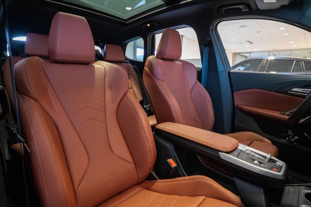 Technology Package (Head-Up Display, Heated Steering Wheel, Live Cockpit Pro, Panoramic Moonroof, Parking Assistant Plus, Premium Content 1, and Remote Engine Start), X1 xDrive28i, 4D Sport Utility, AWD, Black Sapphire Metallic, Castanea Premium Synthetic, 4-Wheel Disc Brakes, 7 Speakers, ABS brakes, Air Conditioning, Alloy wheels, AM/FM Radio, AM/FM radio: SiriusXM with 360L, Apple CarPlay Compatibility, Auto High-beam Headlights, Auto-dimming door mirrors, Auto-dimming Rear-View mirror, Automatic temperature control, BMW TeleServices, Brake assist, Bumpers: body-color, Compass, Delay-off headlights, Driver door bin, Driver vanity mirror, Dual front impact airbags, Dual front side impact airbags, Electronic Stability Control, Emergency communication system: BMW Assist eCall, Exterior Parking Camera Rear, Four wheel independent suspension, Front anti-roll bar, Front Bucket Seats, Front Center Armrest w/Storage, Front dual zone A/C, Front reading lights, Heated door mirrors, Heated Front Seats, Heated front seats, Illuminated entry, Knee airbag, Leather steering wheel, Low tire pressure warning, Memory seat, Navigation, Navigation System, Occupant sensing airbag, Outside temperature display, Overhead airbag, Overhead console, Panic alarm, Passenger door bin, Passenger vanity mirror, Perforated Veganza Upholstery, Power door mirrors, Power driver seat, Power Front Seats, Power Liftgate, Power passenger seat, Power steering, Power windows, Radio data system, Rain sensing wipers, Rear anti-roll bar, Rear reading lights, Rear seat center armrest, Rear window defroster, Rear window wiper, Remote keyless entry, Security system, Speed control, Speed-sensing steering, Speed-Sensitive Wipers, Split folding rear seat, Spoiler, Sport Seats, Steering wheel mounted audio controls, Tachometer, Telescoping steering wheel, Tilt steering wheel, Traction control, Trip computer, Turn signal indicator mirrors, Universal Garage-Door Opener, Variably intermittent wipers, Wheels: 18" x 7.5" V-Spoke Bi-Color, Widescreen Display, and Wireless Device Charging.