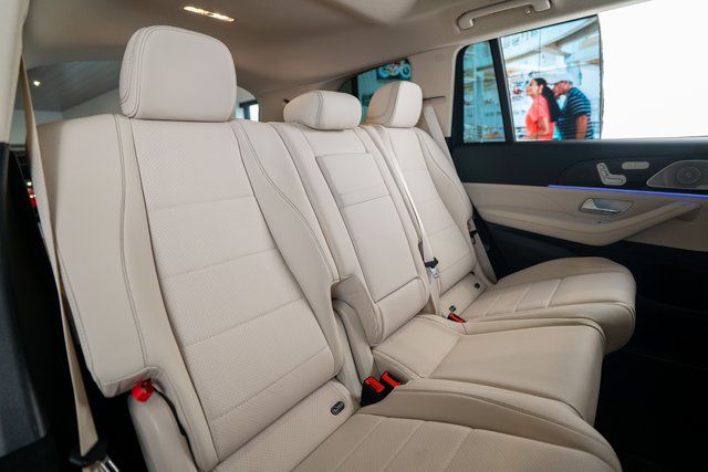 13 Speakers, 3rd row seats: split-bench, 4-Wheel Disc Brakes, 7-Seat Configuration, ABS brakes, Adaptive suspension, Air Conditioning, Alloy wheels, AM/FM radio: SiriusXM, Apple CarPlay®/Android Auto®, Auto High-beam Headlights, Auto tilt-away steering wheel, Auto-dimming door mirrors, Auto-dimming Rear-View mirror, Auto-leveling suspension, Automatic temperature control, Brake assist, Bumpers: body-color, Child-Seat-Sensing Airbag, Compass, Delay-off headlights, Driver door bin, Driver vanity mirror, Dual front impact airbags, Dual front side impact airbags, Electronic Stability Control, Emergency communication system: eCall Emergency System, Exterior Parking Camera Rear, Four wheel independent suspension, Front anti-roll bar, Front Bucket Seats, Front Center Armrest w/Storage, Front dual zone A/C, Front reading lights, Fully automatic headlights, Garage door transmitter: HomeLink, Head restraints memory, Heated door mirrors, Heated front seats, Illuminated entry, Knee airbag, Leather steering wheel, Low tire pressure warning, MB-Tex Upholstery, Memory seat, Navigation system: MB Navigation, Occupant sensing airbag, Outside temperature display, Overhead airbag, Overhead console, Panic alarm, Passenger door bin, Passenger vanity mirror, Power adjustable front head restraints, Power door mirrors, Power driver seat, Power Liftgate, Power moonroof: Panorama, Power passenger seat, Power steering, Power windows, Premium audio system: MBUX, Radio: Burmester® Surround Sound System, Rain sensing wipers, Rear air conditioning, Rear anti-roll bar, Rear dual zone A/C, Rear fog lights, Rear reading lights, Rear seat center armrest, Rear window defroster, Rear window wiper, Reclining 3rd row seat, Remote keyless entry, Security system, Speed control, Speed-sensing steering, Speed-Sensitive Wipers, Split folding rear seat, Spoiler, Steering wheel memory, Steering wheel mounted audio controls, Tachometer, Telescoping steering wheel, Tilt steering wheel, Traction control, Trip computer, Turn signal indicator mirrors, Variably intermittent wipers, Ventilated front seats, Weather band radio, and Wheels: 21" Triple 5-Spoke.