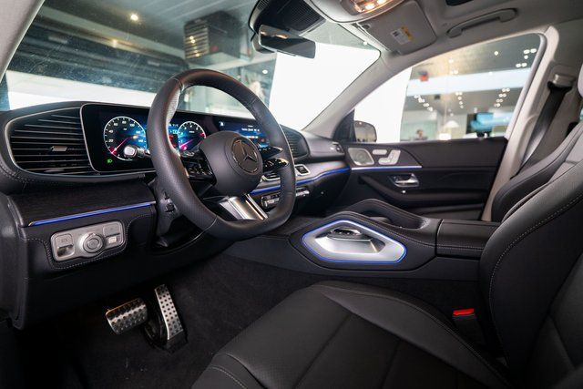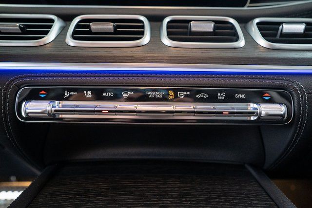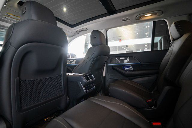 13 Speakers, 3rd row seats: split-bench, 4-Wheel Disc Brakes, 7-Seat Configuration, ABS brakes, Adaptive suspension, Air Conditioning, Alloy wheels, AM/FM radio: SiriusXM, Apple CarPlay®/Android Auto®, Auto High-beam Headlights, Auto tilt-away steering wheel, Auto-dimming door mirrors, Auto-dimming Rear-View mirror, Auto-leveling suspension, Automatic temperature control, Brake assist, Bumpers: body-color, Child-Seat-Sensing Airbag, Compass, Delay-off headlights, Driver door bin, Driver vanity mirror, Dual front impact airbags, Dual front side impact airbags, Electronic Stability Control, Emergency communication system: eCall Emergency System, Exterior Parking Camera Rear, Four wheel independent suspension, Front anti-roll bar, Front Bucket Seats, Front Center Armrest w/Storage, Front dual zone A/C, Front reading lights, Fully automatic headlights, Garage door transmitter: HomeLink, Head restraints memory, Heated door mirrors, Heated front seats, Illuminated entry, Knee airbag, Leather steering wheel, Low tire pressure warning, MB-Tex Upholstery, Memory seat, Navigation system: MB Navigation, Occupant sensing airbag, Outside temperature display, Overhead airbag, Overhead console, Panic alarm, Passenger door bin, Passenger vanity mirror, Power adjustable front head restraints, Power door mirrors, Power driver seat, Power Liftgate, Power moonroof: Panorama, Power passenger seat, Power steering, Power windows, Premium audio system: MBUX, Radio: Burmester® Surround Sound System, Rain sensing wipers, Rear air conditioning, Rear anti-roll bar, Rear dual zone A/C, Rear fog lights, Rear reading lights, Rear seat center armrest, Rear window defroster, Rear window wiper, Reclining 3rd row seat, Remote keyless entry, Security system, Speed control, Speed-sensing steering, Speed-Sensitive Wipers, Split folding rear seat, Spoiler, Steering wheel memory, Steering wheel mounted audio controls, Tachometer, Telescoping steering wheel, Tilt steering wheel, Traction control, Trip computer, Turn signal indicator mirrors, Variably intermittent wipers, Ventilated front seats, Weather band radio, and Wheels: 21" Triple 5-Spoke.