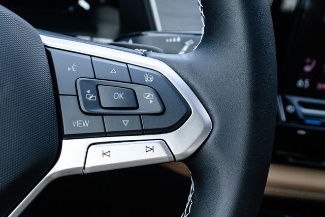 Volkswagen Certified Pre-Owned Certified, 4-Wheel Disc Brakes, 4-Wheel Independent Suspension, 6 Speakers, ABS brakes, Air Conditioning, Alloy wheels, AM/FM radio: SiriusXM with 360L, Auto High-beam Headlights, Auto-dimming Rear-View mirror, Automatic temperature control, Brake assist, Bumpers: body-color, Compass, Delay-off headlights, Driver door bin, Driver vanity mirror, Dual front impact airbags, Dual front side impact airbags, Electronic Stability Control, Emergency communication system: VW Car-Net Safe & Secure 5-year, Exterior Parking Camera Rear, Four wheel independent suspension, Front anti-roll bar, Front Bucket Seats, Front Center Armrest, Front dual zone A/C, Front fog lights, Front reading lights, Fully automatic headlights, Garage door transmitter: HomeLink, Heated and Actively Ventilated Front Bucket Seats, Heated door mirrors, Heated Front Seats, Heated steering wheel, Illuminated entry, Low tire pressure warning, Occupant sensing airbag, Outside temperature display, Overhead airbag, Overhead console, Panic alarm, Passenger door bin, Passenger vanity mirror, Perforated V-Tex Leatherette Seating Surfaces, Power door mirrors, Power driver seat, Power Liftgate, Power steering, Power windows, Radio data system, Radio: MIB3 Composition Media, Rain sensing wipers, Rear anti-roll bar, Rear reading lights, Rear seat center armrest, Rear window defroster, Rear window wiper, Remote Keyless Entry, Security system, Speed control, Speed-sensing steering, Split folding rear seat, Spoiler, Steering wheel mounted audio controls, Tachometer, Telescoping steering wheel, Tilt steering wheel, Traction control, Trip computer, Turn signal indicator mirrors, Variably intermittent wipers, Ventilated front seats, and Wheels: 20" 5-Spoke 2-Tone Machined Alloy.